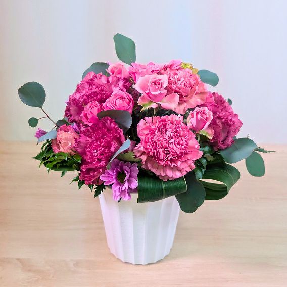 会社のロゴなどのブランドカラーがあわせた色で作るアレンジメントは、より特別感があり目立つだけでなく、胡蝶蘭以上に喜ばれるお祝い花になります。リクエスト可能、色の表現が豊かなアレンジメントは、花以想のおすすめギフトのひとつです。ぜひご利用ください。