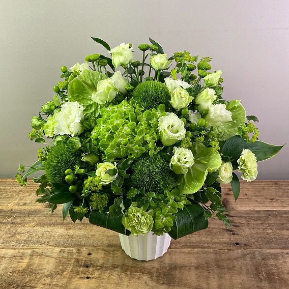 主要取引先・上場企業等: 目安予算 ¥30,000〜¥50,000。2L〜5Lサイズ、胡蝶蘭・大型アレンジで厳かな印象に。