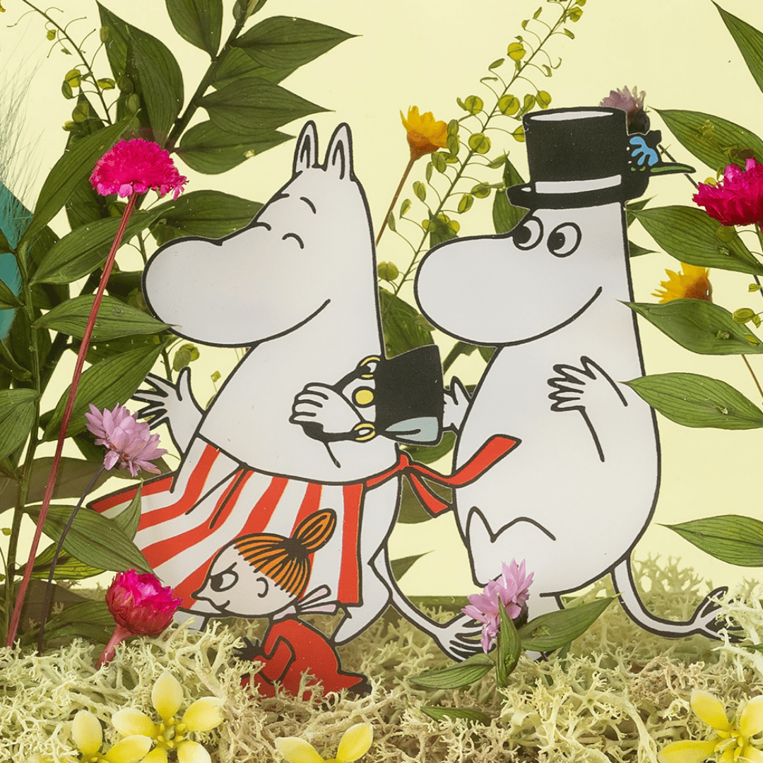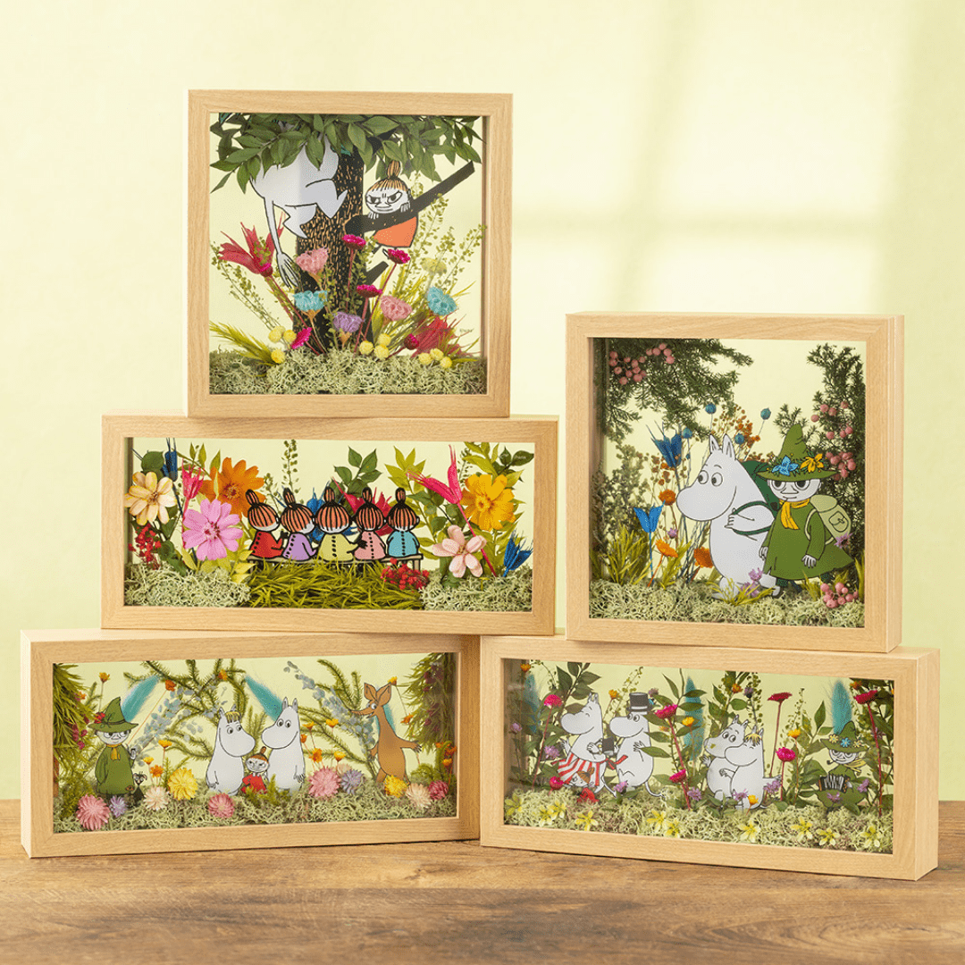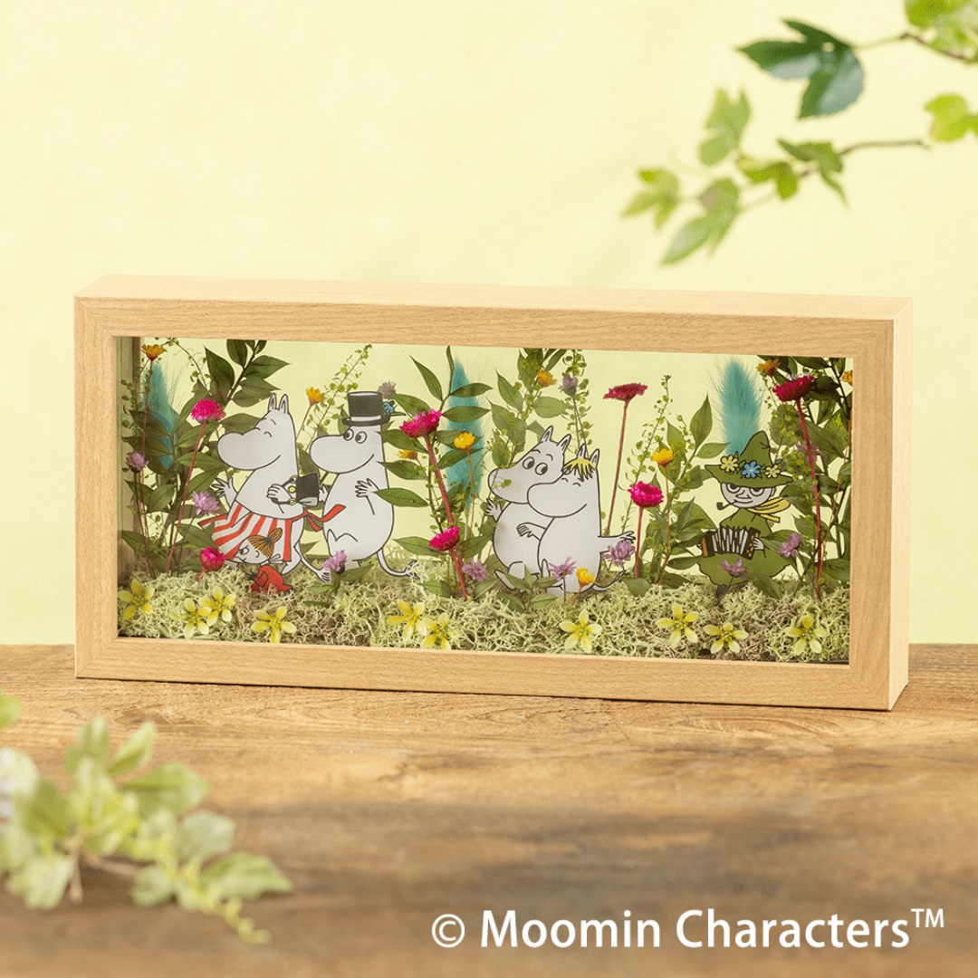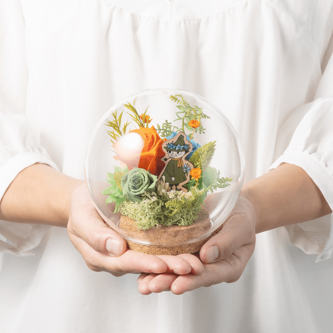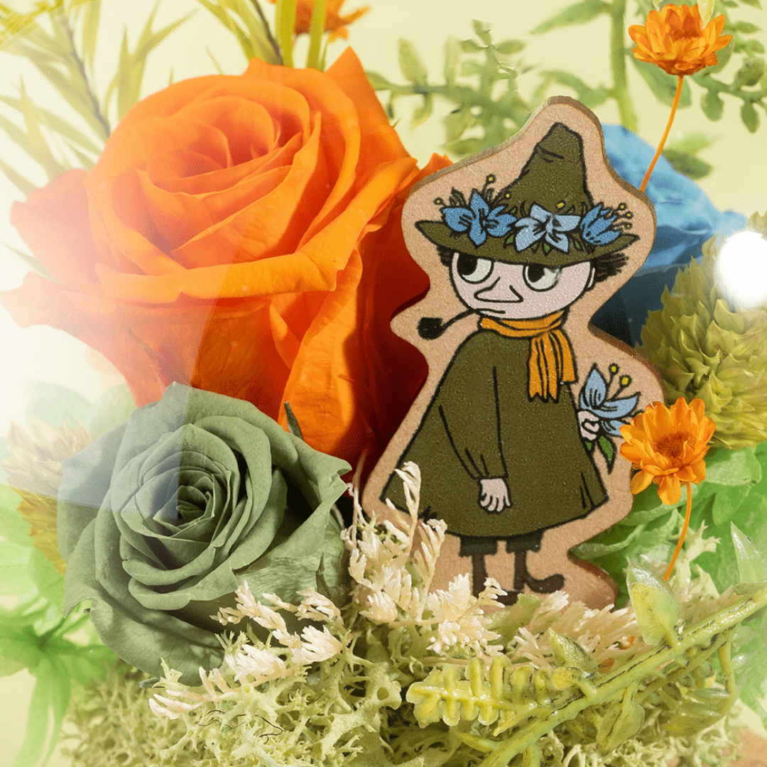 海と山に囲まれた、自然あふれるムーミン谷には季節をいろどる美しい花々が咲いています。そんな自然豊かな環境の中で、ムーミンをはじめとする個性豊かなキャラクターたちは、日常のささやかな喜びを見つけて暮らしています。仲間と共に困難を乗り越え、日常のささやかな幸せを楽しむことの大切さを描いたムーミンの世界観は、花以想が大切にしている「人とのつながり」にも通じます。大切な方への贈り物に、ぜひお選びください。
