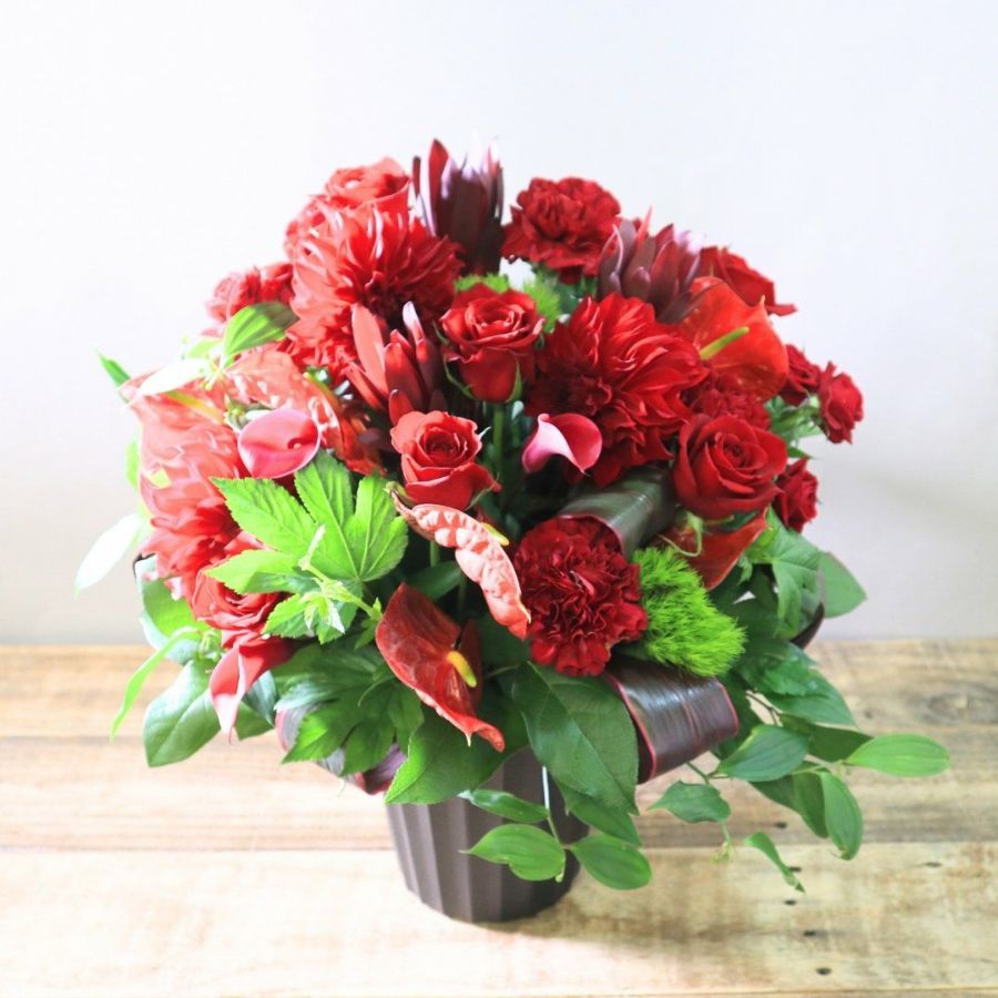 60歳 還暦祝いの花|誕生日プレゼントに|母・女性におすすめ|アレンジメント「スカーレット」華やかLサイズ