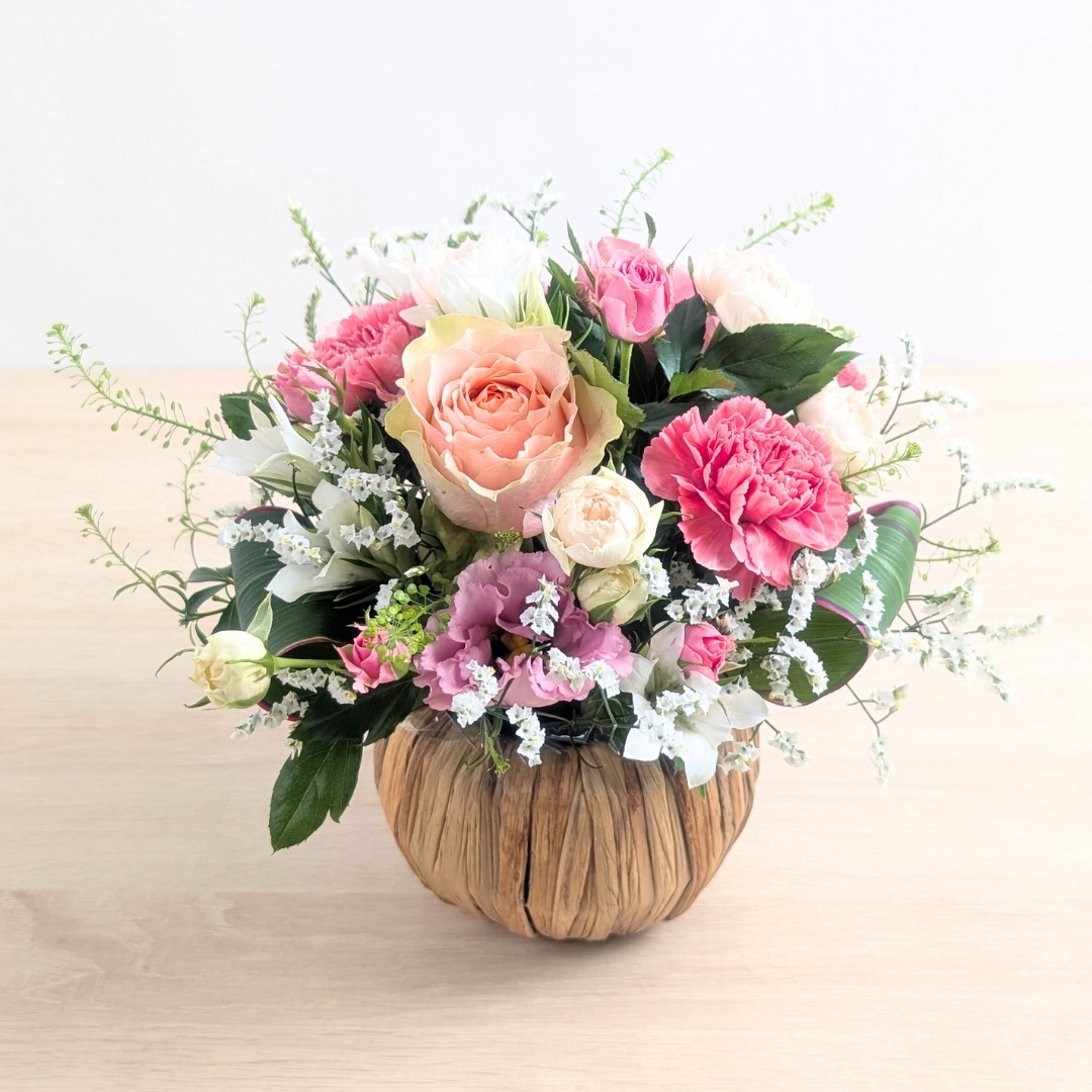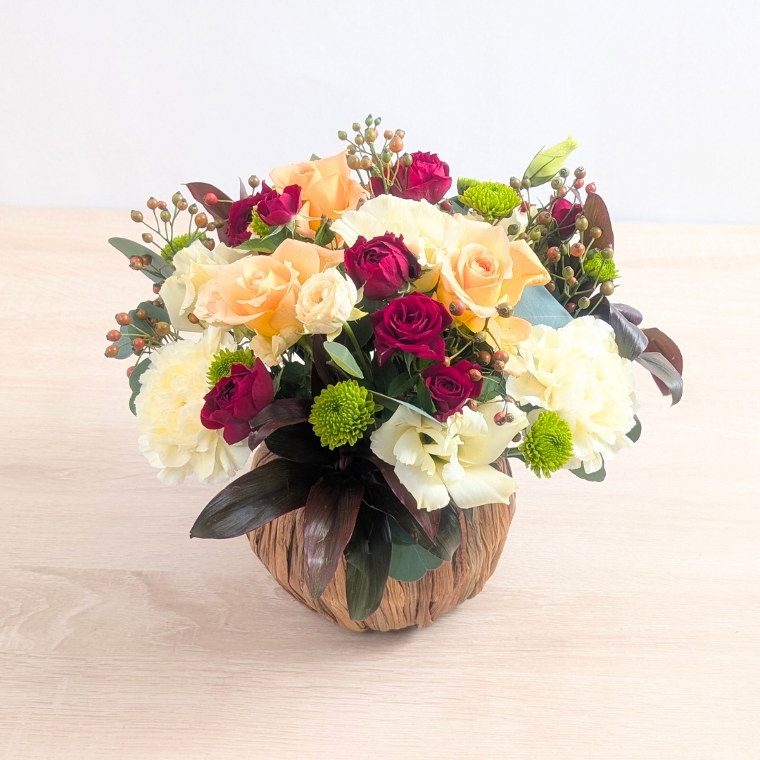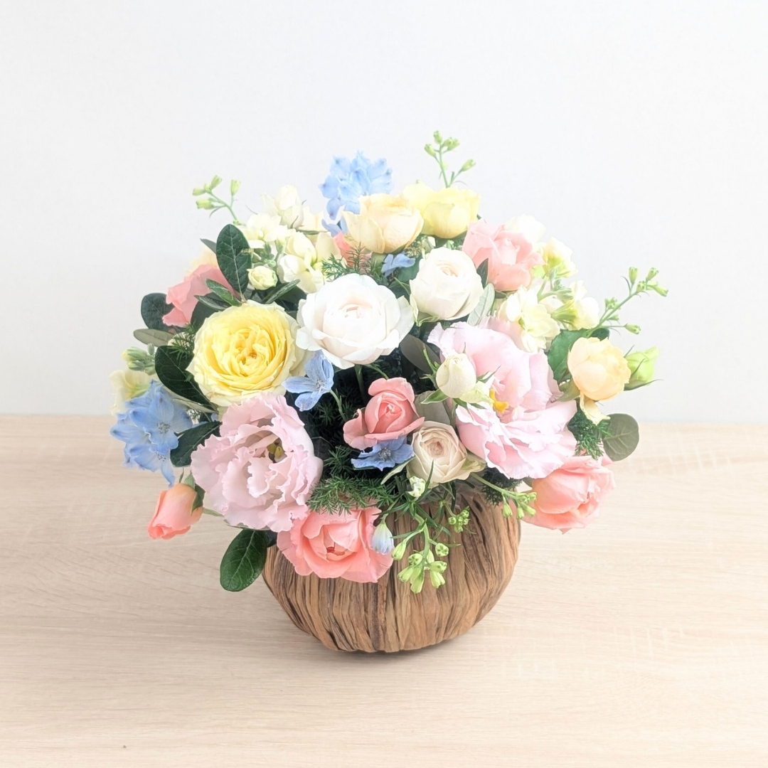 特に「友人と割り勘で贈りたい」「みんなで気軽にプレゼントしたい」というシーンにもぴったり。 予算を出し合って〈一人あたり × ○人〉という形でも、まとまりのあるギフトとしてお届けが可能です。 迷いがちな花材選びやラッピングもすべてお任せできるため、人数が多くても安心です。