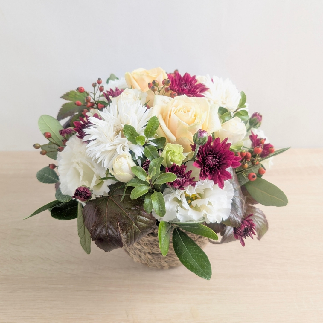 花以想(はないも)のおまかせ花ギフトは、「おまかせ」でありながら、用途や贈る相手のイメージをうかがい、フローリストが一点ずつ丁寧に仕上げます。 お祝い・日頃の感謝・仲間同士で贈るギフトなど、どんなシーンも安心してお選びいただけます。ぜひご利用ください。