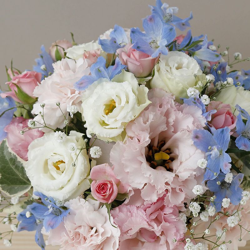 - 推奨花材:トルコキキョウ/スプレーバラ(淡色)/ガーベラ(淡色)/アルストロメリア/小菊/淡色カーネーション/デンファレ