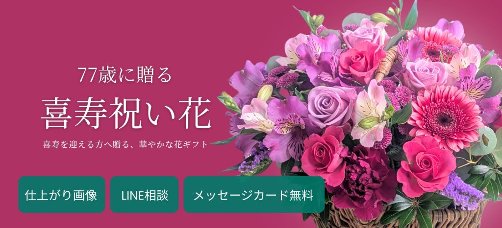喜寿の節目に、感謝の花束を。笑顔のつぼみがまたひとつ、ふくらみますよう願っています。