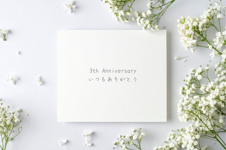3年目の記念日おめでとう!ふたりの絆が、時とともに美しく輝きますように。