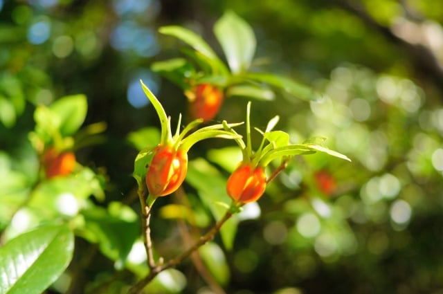 クチナシの花言葉は「私は幸せ」。とっぷりとした乳白色の花も美しく、贈り物としたいところですが、切り花には向かないのが残念。けれど雨の中でこそ、その香りを楽しむことができますから、もし傘の向こうの甘い香りに気づいたら、立ち止まって深呼吸してみてくださいね。