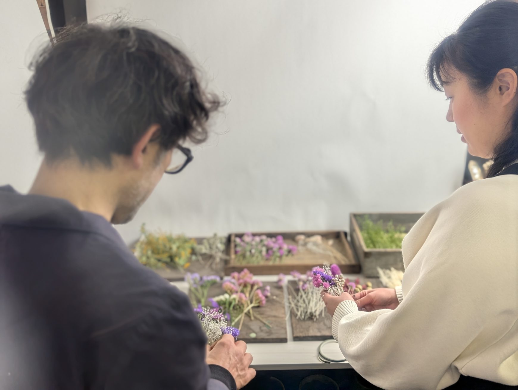 ドライフラワーを制作したり、オーナーや店主の咲さんにアドバイスをいただきながら、