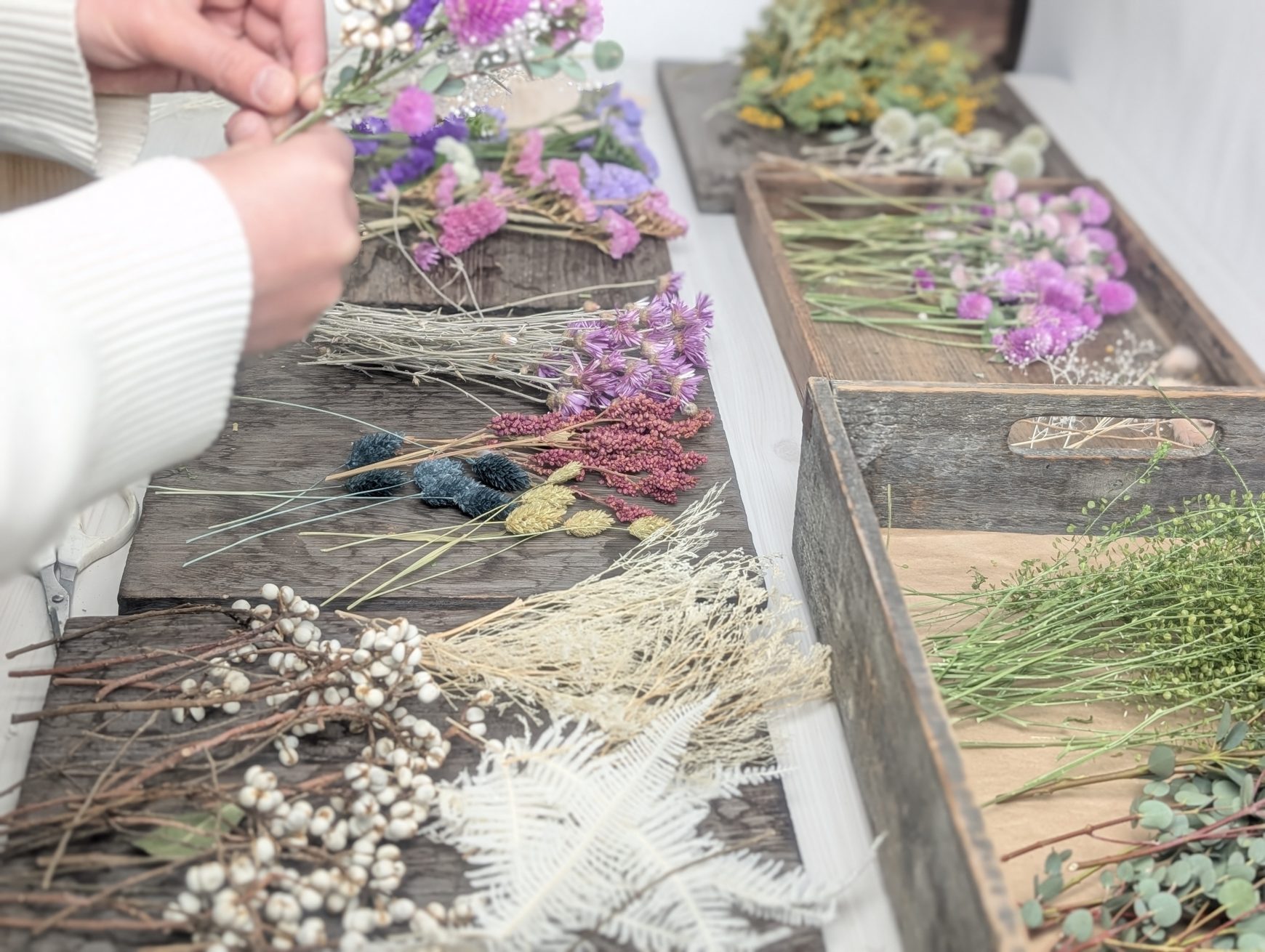 こちらは、ドライフラワーの制作風景です♪