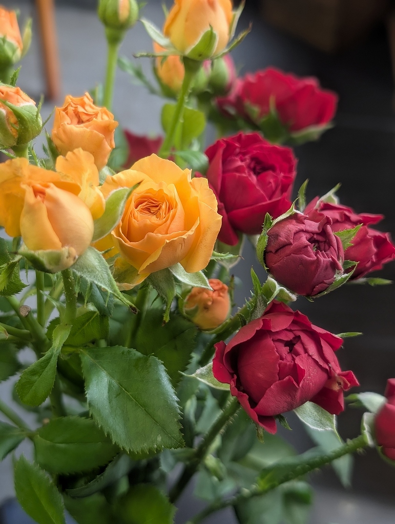 棘の多い花(赤いバラの一部など)