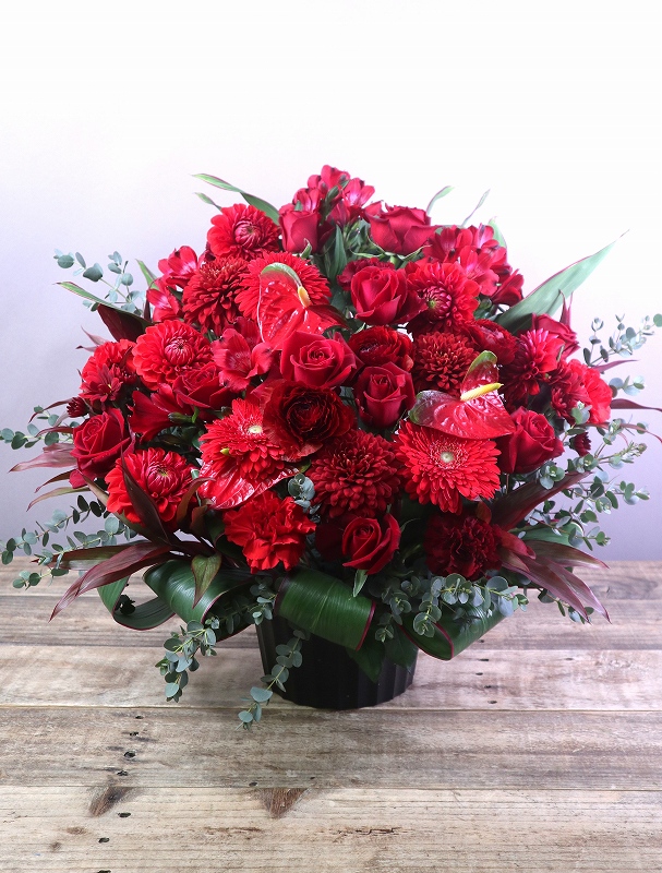 お祝いのお花にふさわしい赤を基調とした素敵なアレンジメントでした。先方様にも大変喜んでいただけました。いいフラワーショップと出会えました。ありがとうございました。
