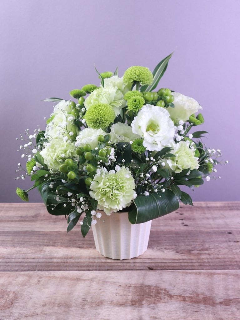 いつもお任せして安心できます。 お名前 :堂園亜佐子様 ご用途:友人の愛犬のお供えとしてお花の評価:100点満点中【100点】ご感想:白と薄い紫のバランスがとても落ち着いていて上品で素敵です。きっと亡くなっ...